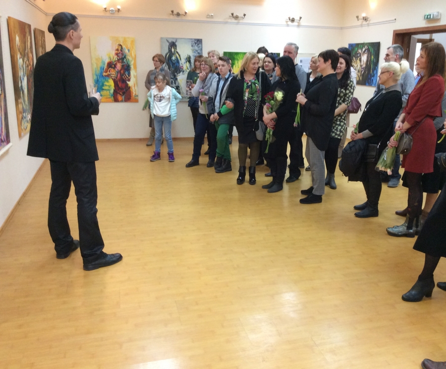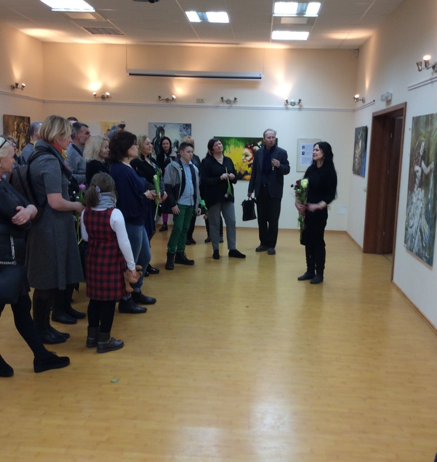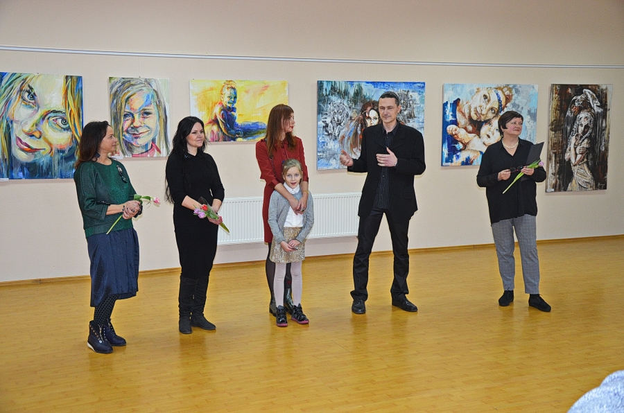 Gausiai susirinkusius renginio dalyvius pasveikino viešosios bibliotekos vyr. specialistė Elvyra Matveičikienė ir pasidžiaugė, kad tą vakarą pasidalinti savo mintimis, papasakoti apie savo kūrybinį kelią ir pristatyti savo kūrinius sutiko parodoje eksponuojamų darbų autoriai: J. Kunickas, N. Dambrauskaitė, A. Daiker-Gulbinienė ir R. Tamo. Išskirtinio kolorito, sodriuose ir iškalbinguose autorių darbuose dominuoja MOTERIS: mūza, deivė, namų židinio sergėtoja, dukra, motina… Autorių darbuose įamžintos ne tik žinomos, aktyviai visuomeninėje veikloje dalyvaujančios moterys, bet ir moterys iš jų artimos aplinkos.
