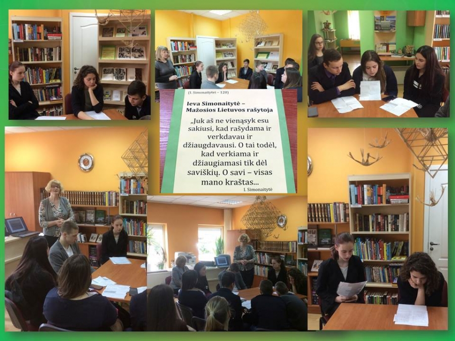 Balandžio 27 dieną Ežerėlio bibliotekoje vyko literatūrinė – muzikinė popietė, skirta I. Simonaitytės jubiliejiniams metams paminėti. Renginio metu Ežerėlio kultūros centro kultūrinių renginių organizatorė V. Pūrienė pristatė Mažosios Lietuvos etnografinius ypatumus, jų reikšmę I. Simonaitytės kūrybai. Popietėje dalyvavę Ežerėlio pagrindinės mokyklos 8 klasės mokiniai skaitė ištraukas iš romano „Aukštujų Šimonių likimas“, aptarė rašytojos kūrybos autentiškumą ir klausėsi muzikinės kompozicijos „Ak, visko buvo…“, kurios metu skambėjo ir pačios rašytojos prisiminimų įrašai ir aktorės V. Kochanskytės skaitomų tekstų ištraukų fonograma. Renginio pabaigoje dalyviai buvo supažindinti su I. Simonaitytės premijos idėja, jos žymiausiais laureatais, aptarė 2017 metų laureato A. Eidinto knygos „Pūga prie Memelio“ turinį.