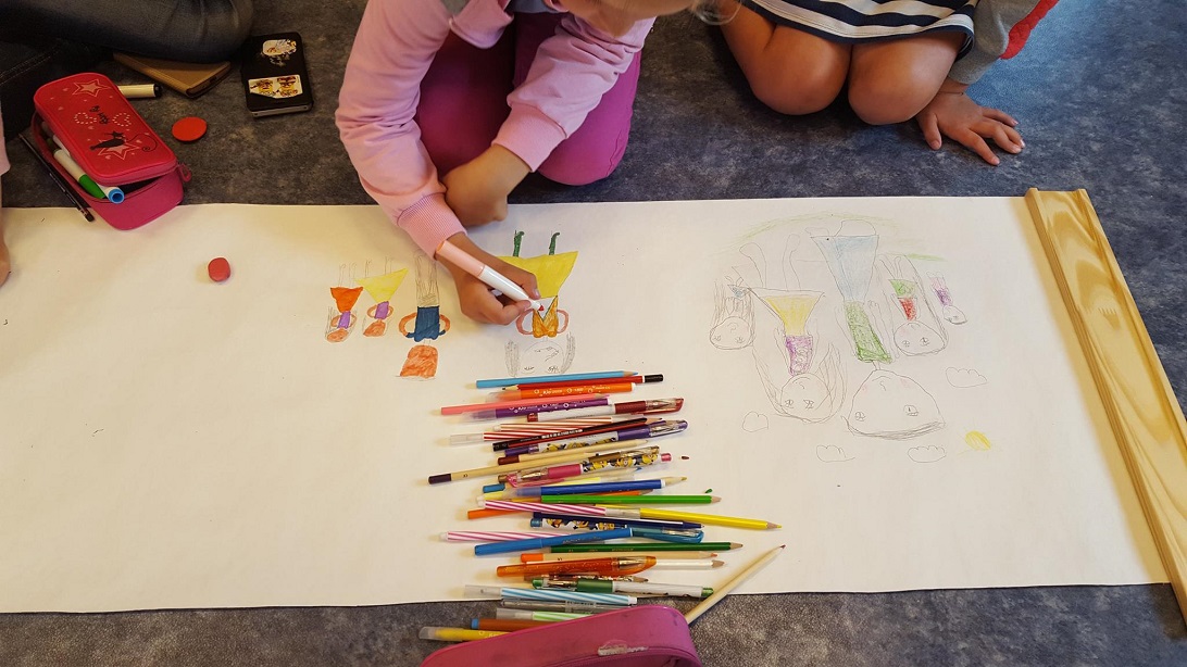 O kur dar Laimės piešimas… o jei tai dar vyksta ant žemės…pasirodo žiežmariečių vaikams laimė – jų šeimos arba namai, po kelionių.
