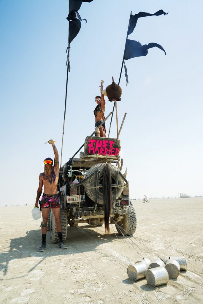 Naujoje garsaus kauniečio fotografo R. Požerskio fotografijų serijoje įamžintos poros, žiedus sumainiusios grandiozinio meninio projekto „Degantis žmogus“ (Burning Man) metu, kai ribos tarp meno ir gyvenimo visiškai ištirpsta.