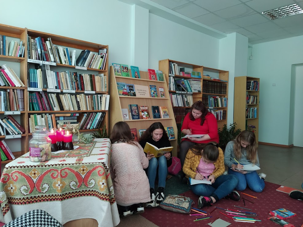 Vaikai patogiai įsitaisė ant pagalvėlių, ant kilimo,  ir žvakių šviesoje pradėjome Šiaurės šalių literatūros skaitymą. Šių metų tema- Šventės šiaurės šalyse, todėl skaitymams buvo pasiūlyta knyga „Pepė ilgakojinė“. Skaitėme ištrauką kaip Pepė ilgakojinė šventė savo gimtadienį. Po skaitymų dalijomės mintimis, kokių minčių kilo beskaitant. Piešėme, žaidėme žaidimus, atsakinėjome į viktorinos klausimus , suvalgėme labai skanų pyragą, skanavome obuolių sultis… Buvo labai linksma, įdomu, gera… jau laukiame kitų metų skaitymų!