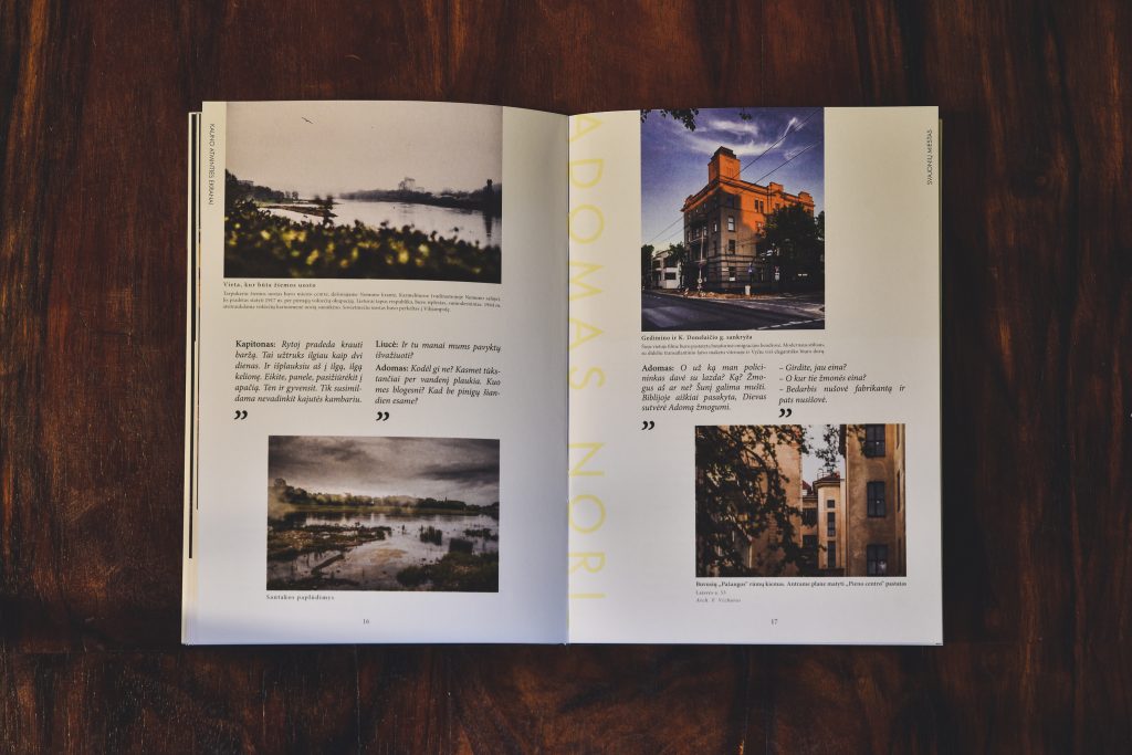 Leidinyje rasite fotografijas ir maršrutus, sukurtus remiantis filmų medžiaga ir paremtus filmų citatomis. Žinoma, tai ne istoriko, o fotografo ir architekto refleksija, todėl nuotrauka nebūtinai susijusi tik su konkrečia vieta ar objektu, bet ir su aplinkos detale, įvykiu ar reiškiniu, neužsilikusiu atmintyje, bet galinčiu tapti nuoroda aiškintis toliau pačiam. Kurti savo atminties maršrutą.