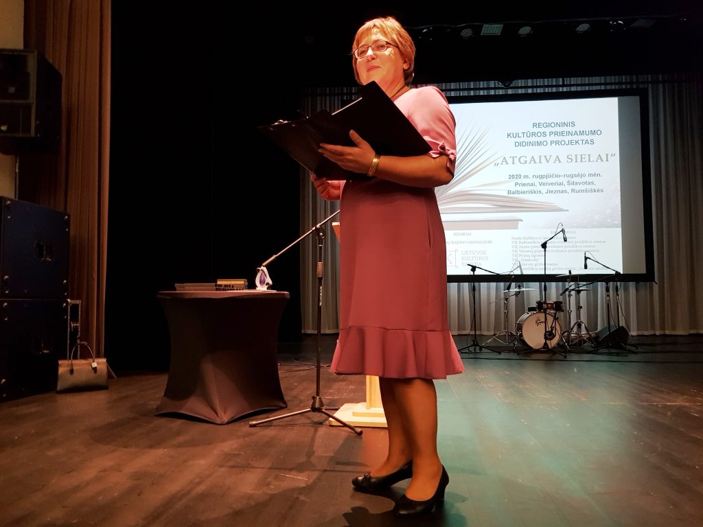 Renginio metu Bibliotekos direktorė Daiva Čepeliauskienė pasveikino renginyje dalyvavusius socialinius darbuotojus su profesines švente – rugsėjo 27 d. minėta Lietuvos socialinio darbuotojo diena. Direktorė pasidžiaugė glaudžiu bendradarbiavimu su socialinių paslaugų, slaugos įstaigomis ir jų darbuotojais: projektas parodė, kad sutelktos sveikatos priežiūros, socialinės paslaugos ir kultūra gali mažinti slaugos ir globos paslaugomis besinaudojančių žmonių psichologinį diskomfortą, vienišumą, praturtinti šių žmonių laisvalaikį, mažinti kultūrinę, socialinę atskirtį, lėtinti kultūrinių kompetencijų, komunikavimo, socialinių įgūdžių nykimo procesus. Toks ir buvo projekto „Atgaiva sielai“ tikslas.