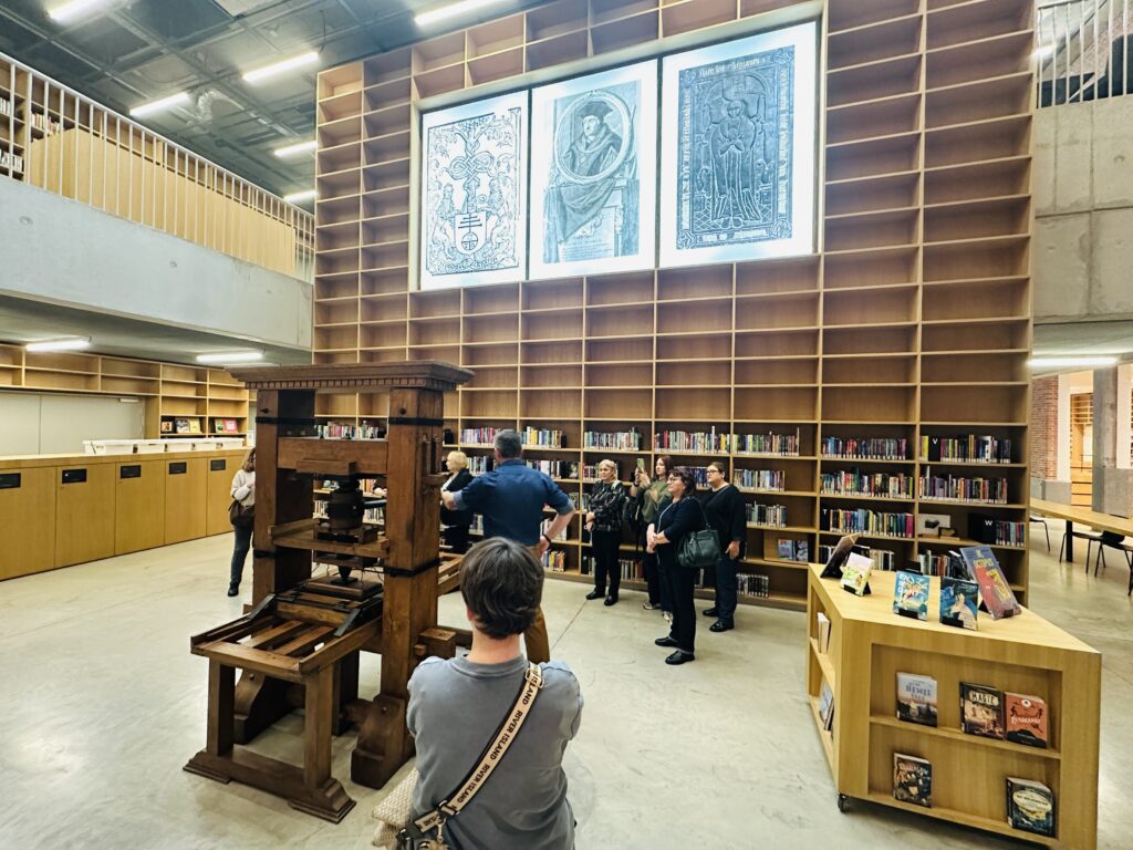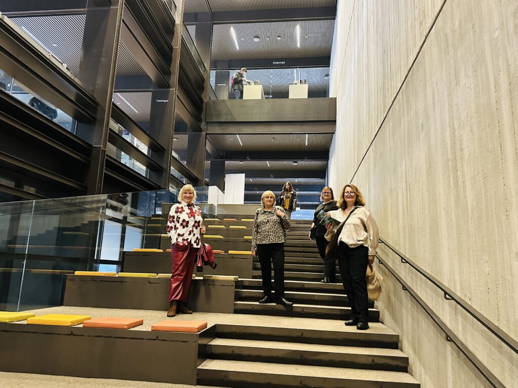 Mūsų grupė lankėsi Aalsto miesto Utopia bibliotekoje – unikaliame pastate, jungiančiame biblioteką ir menų akademiją. Ypatingai maloniai mus sutiko šios bibliotekos darbuotojai su direktoriumi, kuris ir supažindino su įstaigos istorija ir veikla. Čia skaitymas, muzika, teatras ir šokis egzistuoja kartu. Architektai sukūrė erdvę, kurioje knygų lentynos kyla iki 12 metrų aukščio, o didžiuliai langai kviečia gyventojus užeiti tarsi į sceną. Biblioteka yra miesto kultūros epicentras, kuriame kasdien vyksta edukacijos, koncertai, skaitymo dirbtuvės, repeticijos ir kt. Utopia akcentuoja kultūrinę įtrauktį ir bendruomenės kūrybingumą. Biblioteka, tai vieta, kurioje gyventojai ne tik skaito, bet ir kuria.