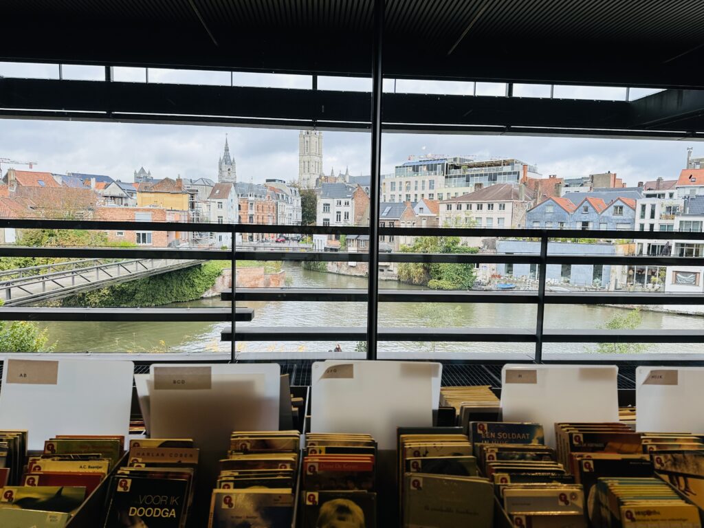 Įdomu buvo susipažinti su bibliotekos struktūra. Čia dirba 100 nuolatinių ir 30 laikinų darbuotojų, o jiems padeda net 274 savanoriai. Gento mieste yra 16 viešųjų bibliotekų, iš kurių viena pagrindinė biblioteka, 14 filialų ir 1 kalėjimo biblioteka. Darbuotojai nuolat ieško įvairių darbo formų, kad lankytojai jaustųsi kaip namie. Ir tas namų pojūtis jautėsi vaikščiojant po bibliotekos erdves – lankytojai patogiai įsitaisę ant žemės piešia, skaito, ruošia pamokas ar tiesiog gėrisi miesto peizažu.