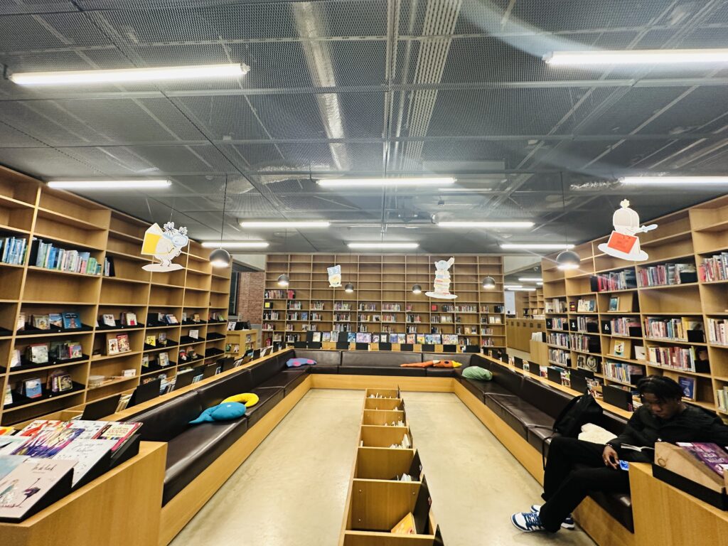 Susipažinome su De Krook bibliotekos Gentbrugge padaliniu, kvepiančiu dažais ir naujumu, nes biblioteka atidaryta tik prieš mėnesį. Kas ypatingo šiame padalinyje? Gentbrugge biblioteka pasižymi savitarnos sprendimais ir paslaugų automatizacija. Tai vienas iš miesto padalinių, kuriame matosi kryptis į savitarnoje grindžiamą lankytojo patirtį: savitarnos terminalai, skaitmeninės registracijos galimybės ir kontaktinės vietos dirba tam, kad paslaugos būtų pasiekiamos 24/7 priklausomai nuo nustatytų darbo laikų ir savitarnos režimų. Šiame padalinyje bibliotekininkai dirba tik 9 valandas per savaitę, o kitas valandas – lankytojai apsitarnauja savarankiškai. Tai modelis, kaip mažesni padaliniai gali efektyviai aptarnauti bendruomenę su mažesniu personalo poreikiu, išlaikant kokybę ir prieinamumą.