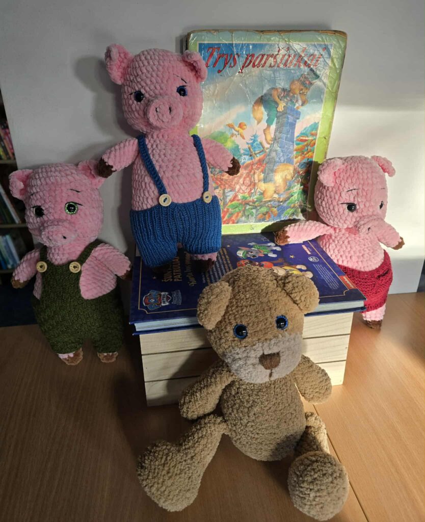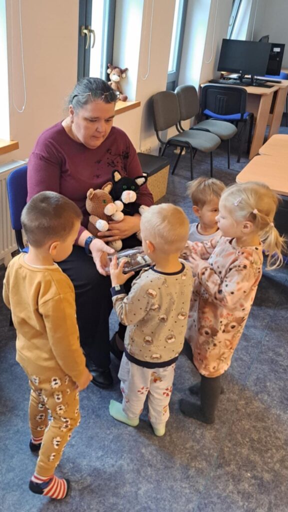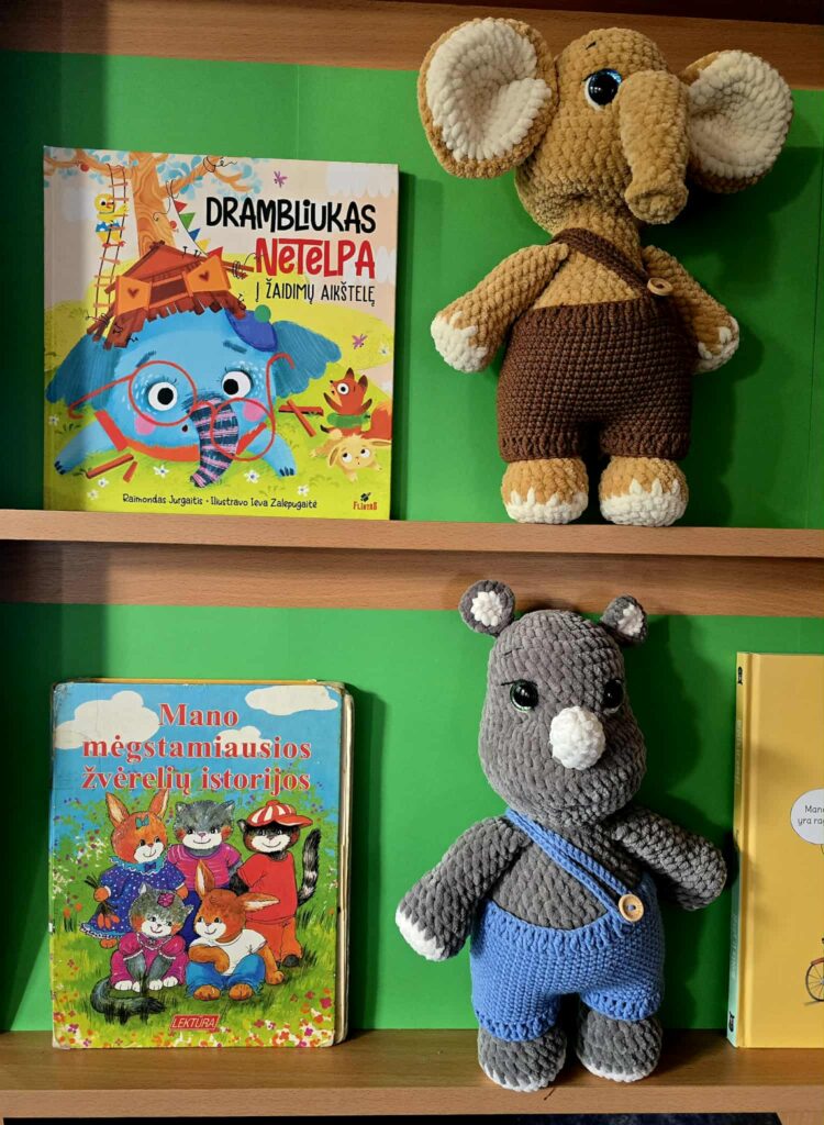 Visas spalio mėnuo – Žiežmarių bibliotekoje su vaikų skaitymais, kvapnia arbata ir pasakomis. Kiekvieną ryta girdisi mažųjų žingsniai: mokyklos darželio ,,Vaikystės dvaras“ darželinukų grupės ,,Skruzdėliukai“ vaikai, vedini mokytojos Violetos Pilkienės ir padėjėjos Angelės Jazukevičienės, įsitaisė ant pagalvėlių ir klausėsi bibliotekininkės Arinos skaitomos knygelės ,,Katinėlis Juodis; Geriausi draugai“. Kitas rytas darželio ,,Varpelis” mažųjų grupė ,,Pelėdžiukai” su mok. N. Kelpšiene. Tik įėję į biblioteką pamato Justinos Ragaišienės nertų žaislų parodą. Tai nuostabūs, rankų darbo nerti žaislai, tikri pasakų herojai. Čia jie atpažino ir katinėlį Juodį, ir tris paršiukus, meškiuką Pedingtoną, visą zuikių kompaniją. O kur dar drakoniukai, drambliukas ir trupininis. Kiek daug pasakų herojų vienoje vietoje.