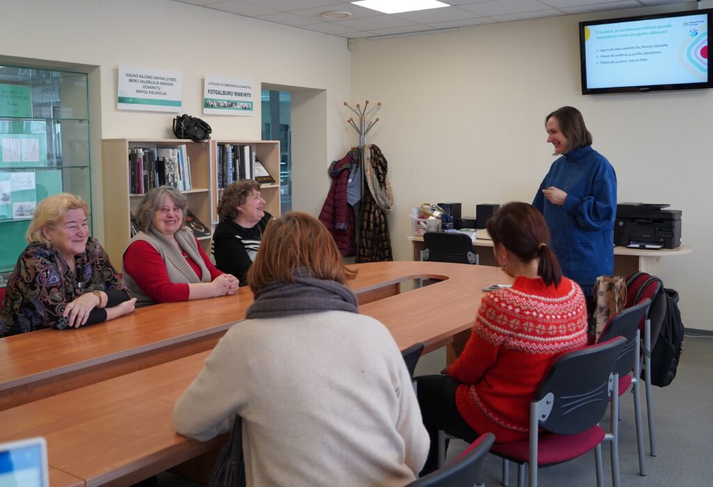 Informacinio raštingumo mokymai „Skaitmeniniai įgūdžiai: viešosios e. paslaugos kasdienai“, tęsiant projekto „Prisijungusi Lietuva“ veiklas, vyko Sitkūnų ir Eigirgalos bibliotekose. Šias veiklas vedanti bibliotekos edukatorė Kristina Meilutė pasakoja: „Sitkūnų bibliotekoje per mokymus „Prisijungusi Lietuva“ vieną užsiėmimą skyrėme transliacijai „E. paslaugos: saugus prisijungimas kasdien“, o protmūšyje žaismingai pagerinome įgūdžius naudotis viešosiomis e. paslaugomis. Taip pat protmūšį žaidėme Garliavoje, Viešojoje bibliotekoje. Dalyvės džiaugėsi, kad jau gana ilgai lanko suaugusiems vartotojams skirtas bibliotekos edukacines veiklas, orientuotas į medijų ir informacinio raštingumo ugdymą. Dėl nuolat atnaujinamų ir gilinamų žinių bibliotekos lankytojos galėjo atsakyti į daug protmūšio klausimų. Nuoseklus dalyvavimas tokiose veiklose iš tiesų didina savarankiškumą, mažina socialinę atskirtį, stiprina pasitikėjimą technologijomis.“