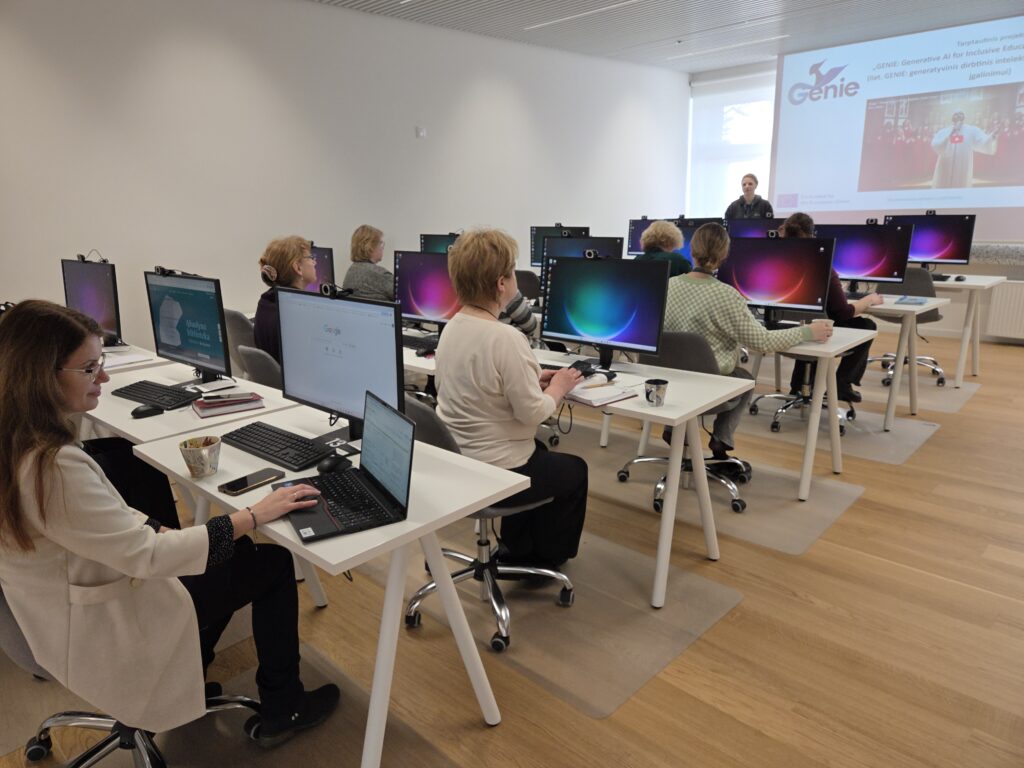 Pagal šį projektą buvo parengti mokymai „GENIE: Mąstyk, kurk ir mokykis su dirbtiniu intelektu (DI)“, kuriuos veda Ąžuolyno bibliotekos vyresn. metodininkės Gina Poškienė, Nemunė Stonkienė ir Rasa Brazaitienė.